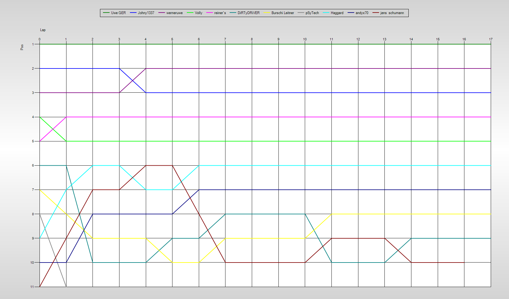 | Laps | 17 | Drivers | 12 |
